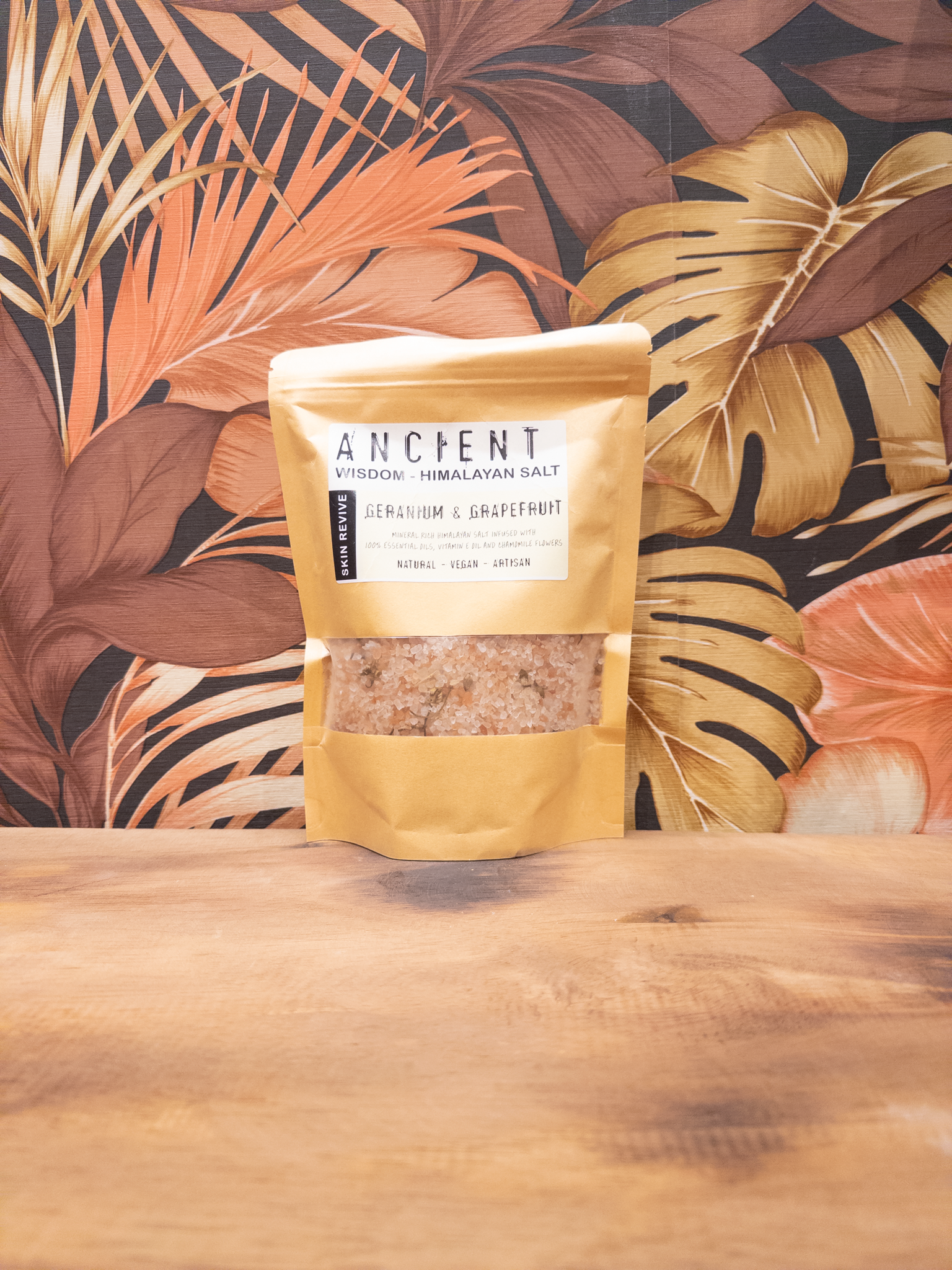 Transform your bath into a rejuvenating spa-like experience with our Bath Salt Himalaya Salt: Geranium. Made from premium, mineral-rich Himalayan salt, this bath salt offers unparalleled relaxation and skin nourishment. Infused with the soothing essence of geranium, it helps melt away stress, leaving your mind refreshed and your skin silky smooth. Treat yourself to this natural solution for holistic wellness and relaxation.